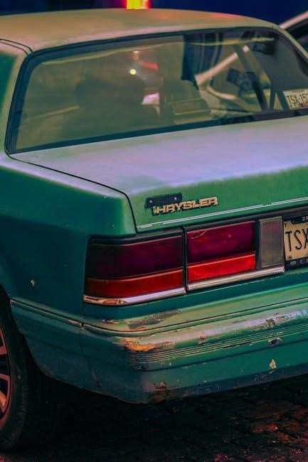 The manual emphasizes the importance of understanding electrical safety precautions before working on the vehicle’s electrical system. It advises disconnecting the negative battery cable to prevent accidental shorts and shocks. Access to these diagrams is crucial for identifying faulty components, repairing damaged wiring, and ensuring proper system functionality. Proper use of these diagrams minimizes diagnostic time and maximizes repair accuracy.