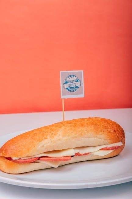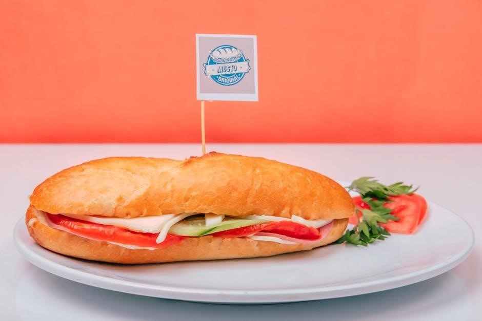 Panini options, pressed to golden perfection, feature melted cheeses and savory fillings. Wraps provide a lighter alternative, utilizing fresh tortillas and vibrant ingredients. The PDF details specific combinations, such as roasted vegetable and hummus wraps, or classic Italian Paninis.